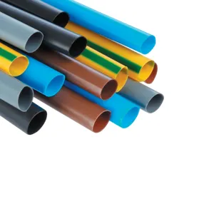 Heat shrink tubing category contains thin wall, medium wall and adhesive-lined types in polyolefin, PTFE and PVC materials. Sizes from 1.5mm to 70mm supplied ID for cable diameters up to 35mm recovered, in phase colours. For electricians and contractors in industrial, commercial and domestic cable insulation and protection.