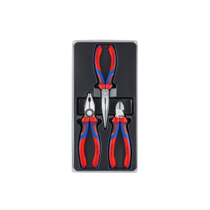 Hand tool kits contain pre-assembled sets of pliers, screwdrivers, cutters, and spanners rated to 1000V IEC 60900 for live electrical work or non-insulated for general use. Supplied in pouches, rolls, cases, or backpacks with 15-50 pieces for electricians and contractors. Brands include Milwaukee, Wera Tools, Felo, Knipex.