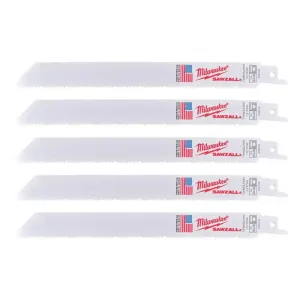 Milwaukee SAWZALL Bi-Metal Reciprocating Saw Blades 150mm 10/14 TPI Multi-Material - 5pcs - 48475292