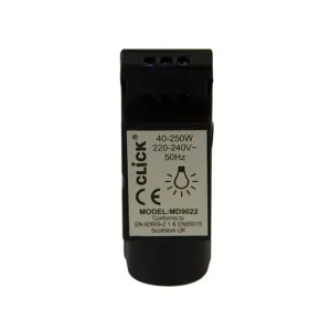 Dimmers from Click Litehouse and Varilight. Complete dimmer plates and modules for 230V AC, 400W inc/hal, 100-300W LED/CFL, SP/3W, trailing/leading edge.
